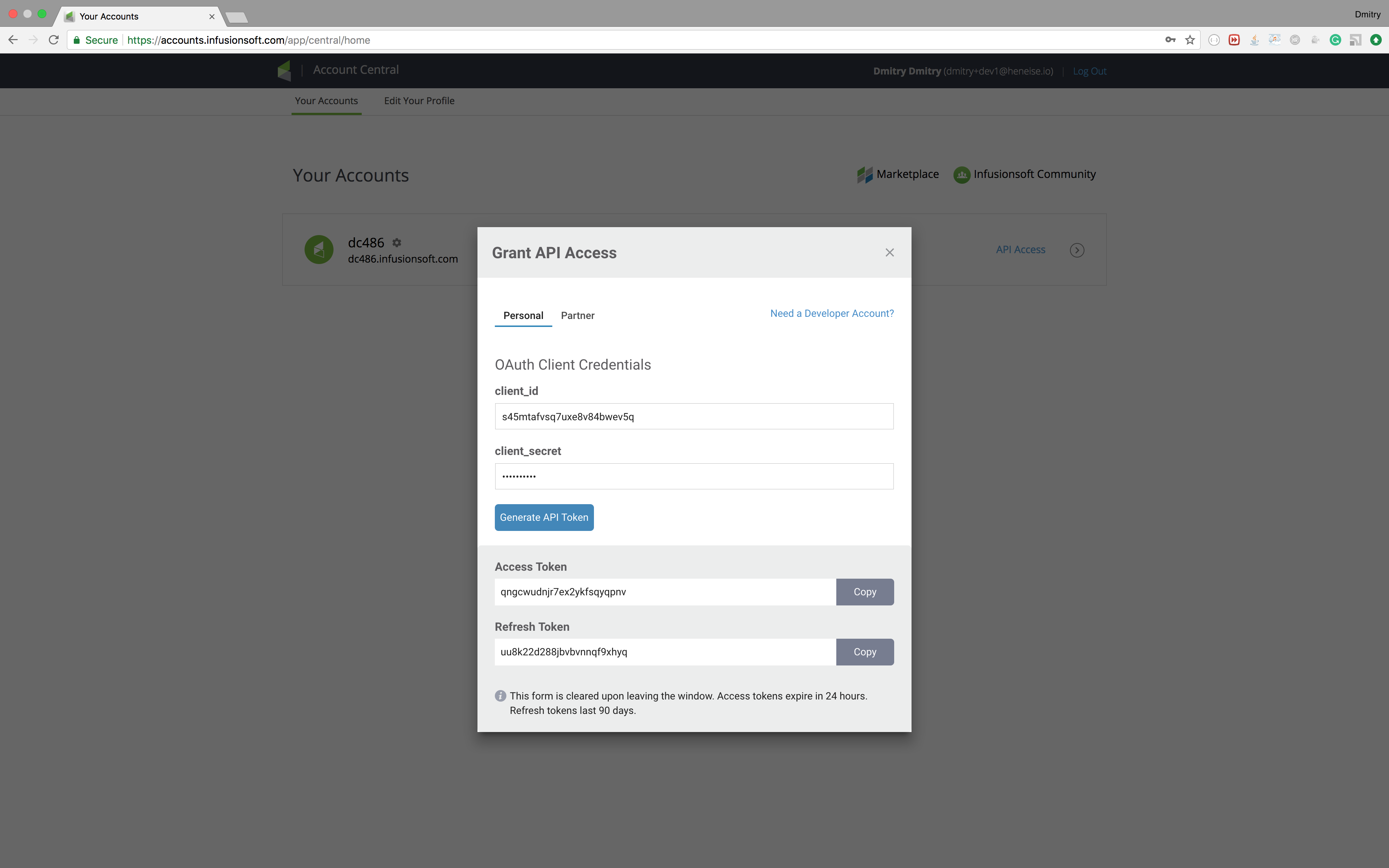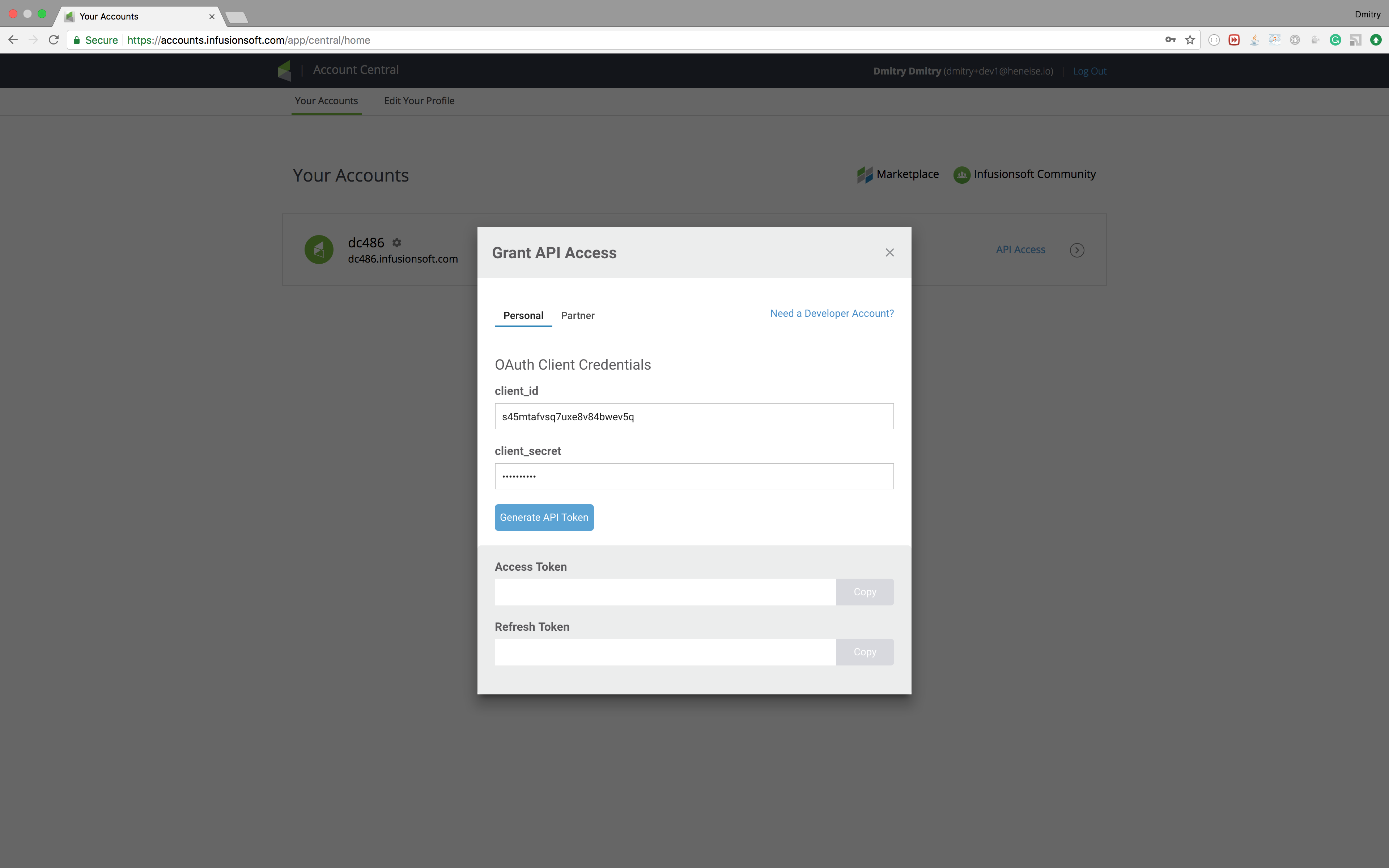 Infusionsoft API and create a new contact. We only need to retrieve an API token