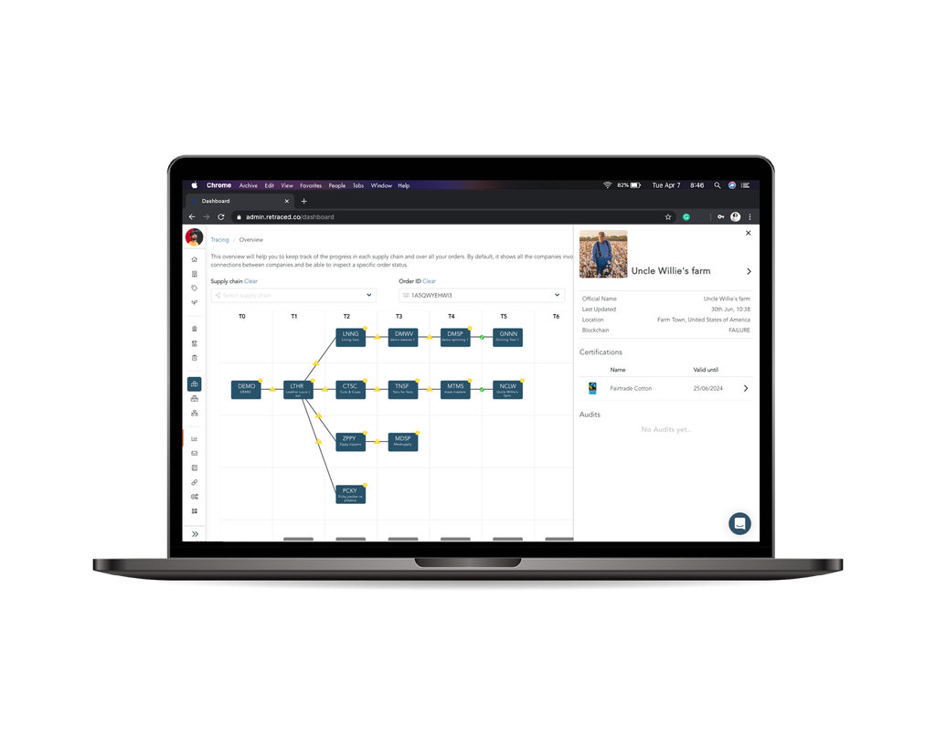 Retraced is a supply chain solution created to support retail businesses in their quest to increase transparency and sustainability. The system’s primary goal is to address the intersection where impact meets efficiency – making transparency a service.